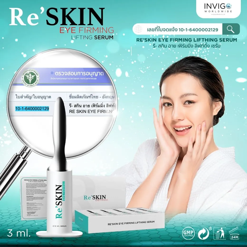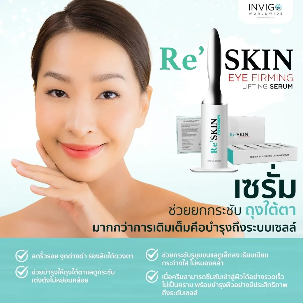 Re Skin 3ml. รี สกิน ครีมลดถุงใต้ตา ครีมลดริ้วรอย อาย เฟิร์มมิ่ง ลิฟท์ติ้ง เซรั่ม